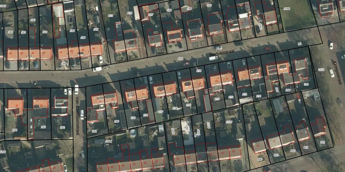 Gebruik de zoekbalk of klik op een perceel voor informatie over de adressen binnen dit perceel.