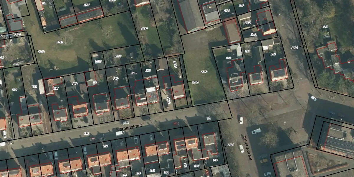 Het perceel waarop Norbartstraat 18 staat heeft een oppervlakte van 213 m². Dit is een middelgroot perceel. De perceeloppervlakte wordt geregistreerd door het Kadaster. Gedetailleerde informatie over de maten van dit perceel kunt u vinden in het rapport Kadastrale kaart met maatvoering van Norbartstraat 18.