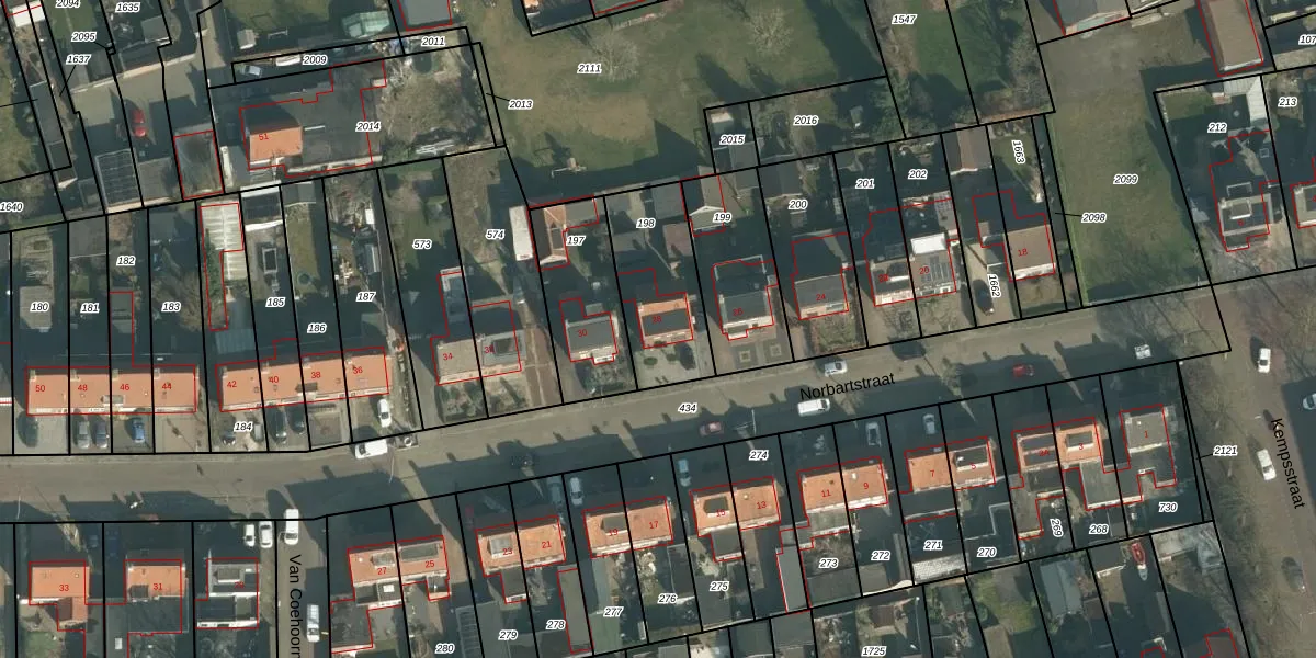 Gebruik de zoekbalk of klik op een perceel voor informatie over de adressen binnen dit perceel.