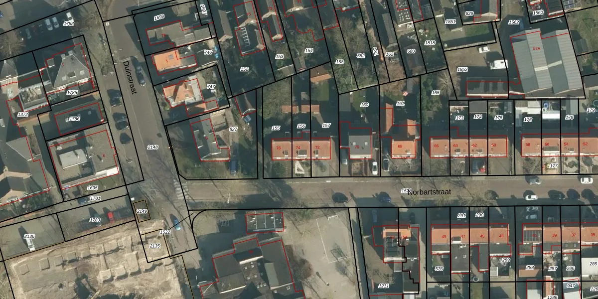 Het perceel waarop Norbartstraat 74 staat heeft een oppervlakte van 221 m². Dit is een middelgroot perceel. De perceeloppervlakte wordt geregistreerd door het Kadaster. Gedetailleerde informatie over de maten van dit perceel kunt u vinden in het rapport Kadastrale kaart met maatvoering van Norbartstraat 74.