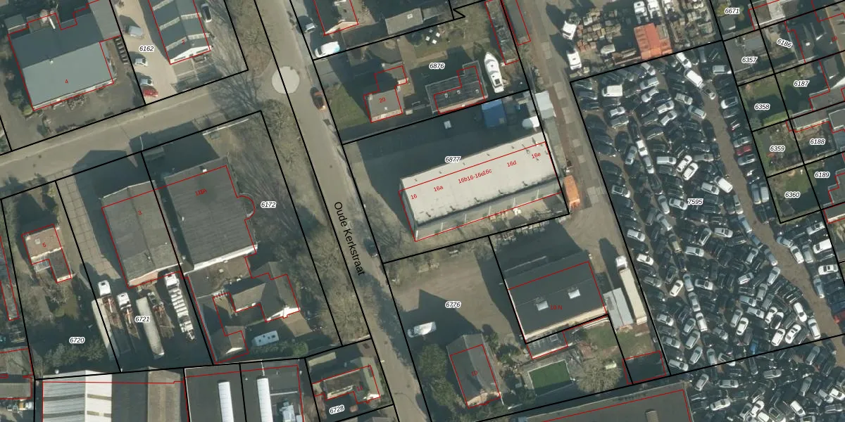 Oude Kerkstraat 16 is gelegen op kadastraal perceel MDE01H6877. Deze kadastrale aanduiding is uniek en wordt gebruikt door het Kadaster om eigendomsrechten en andere zakelijke rechten vast te leggen. Het perceel maakt onderdeel uit van de kadastrale gemeente Made en Drimmelen.