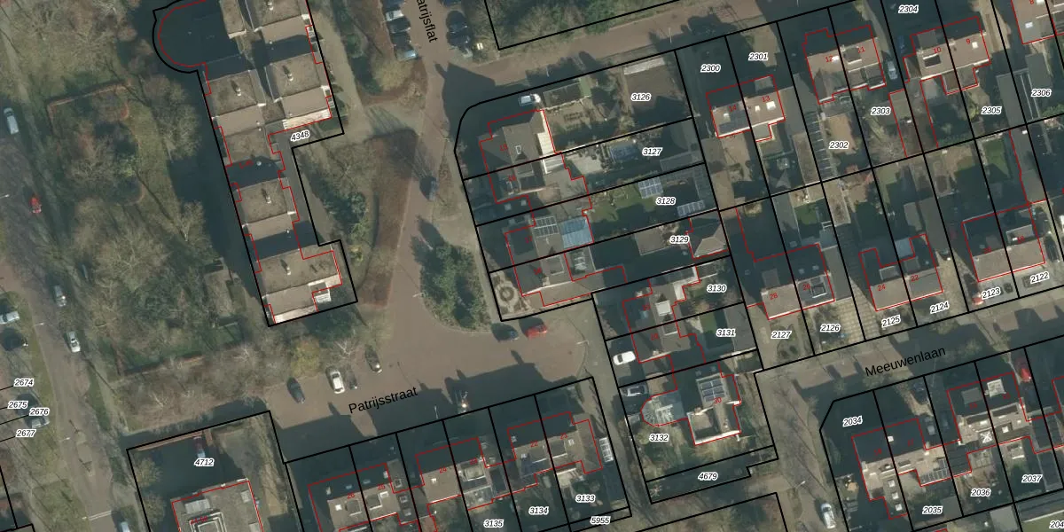 Het perceel waarop Patrijsstraat 18 staat heeft een oppervlakte van 421 m². Dit is een groot perceel. De perceeloppervlakte wordt geregistreerd door het Kadaster. Gedetailleerde informatie over de maten van dit perceel kunt u vinden in het rapport Kadastrale kaart met maatvoering van Patrijsstraat 18.