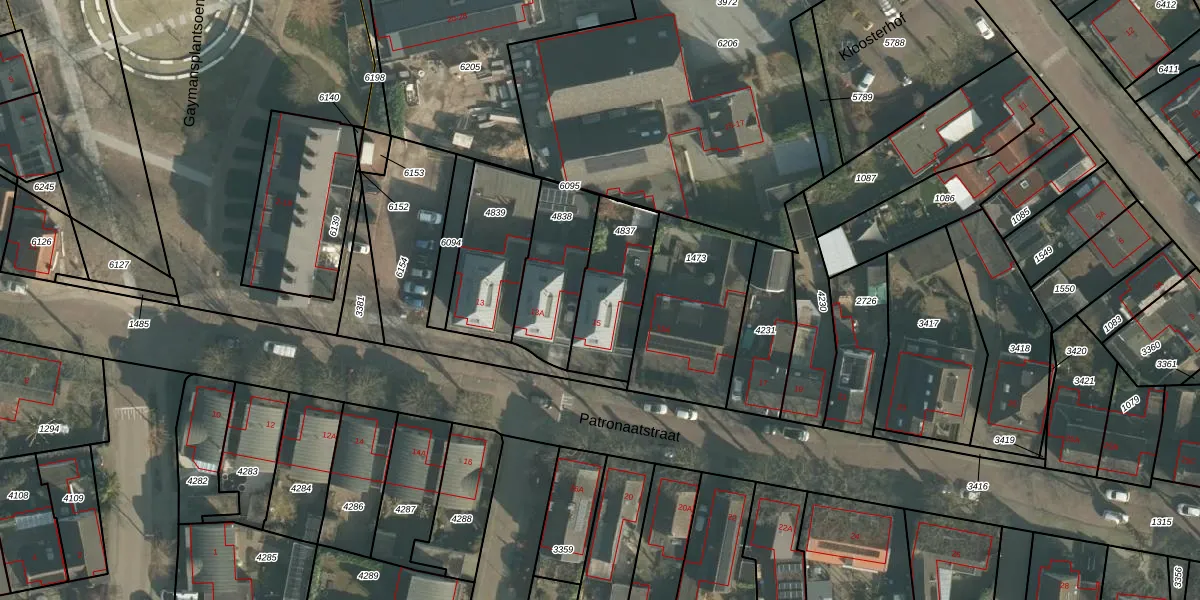 Het perceel waarop Patronaatstraat 15 staat heeft een oppervlakte van 303 m². Dit is een groot perceel. De perceeloppervlakte wordt geregistreerd door het Kadaster. Gedetailleerde informatie over de maten van dit perceel kunt u vinden in het rapport Kadastrale kaart met maatvoering van Patronaatstraat 15.