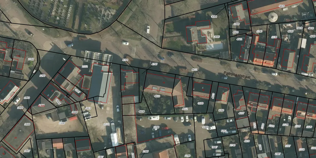 Het perceel waarop Patronaatstraat 44 staat heeft een oppervlakte van 476 m². Dit is een groot perceel. De perceeloppervlakte wordt geregistreerd door het Kadaster. Gedetailleerde informatie over de maten van dit perceel kunt u vinden in het rapport Kadastrale kaart met maatvoering van Patronaatstraat 44.