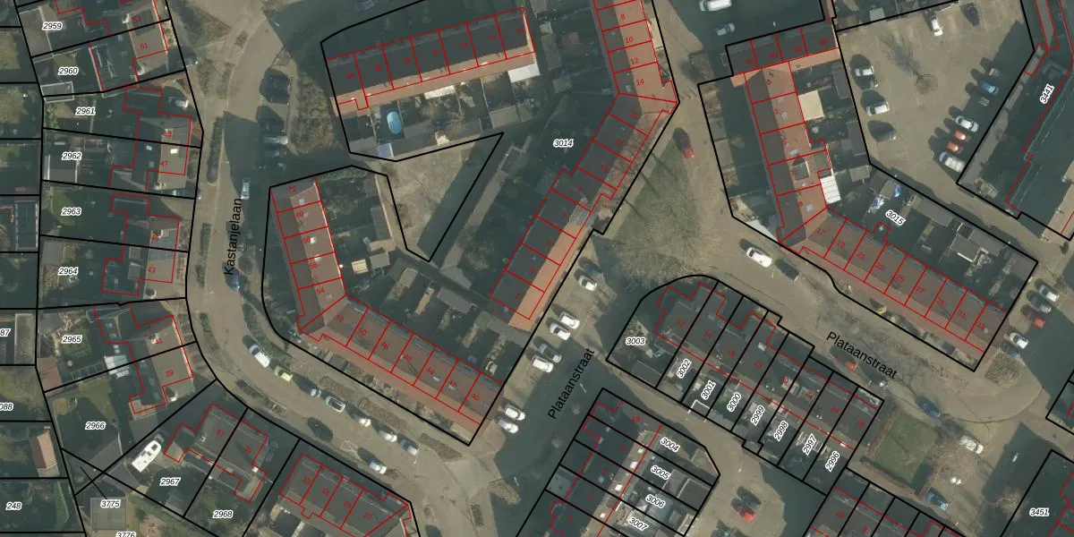 Plataanstraat 3 is gelegen op kadastraal perceel MDE01S3014. Deze kadastrale aanduiding is uniek en wordt gebruikt door het Kadaster om eigendomsrechten en andere zakelijke rechten vast te leggen. Het perceel maakt onderdeel uit van de kadastrale gemeente Made en Drimmelen.