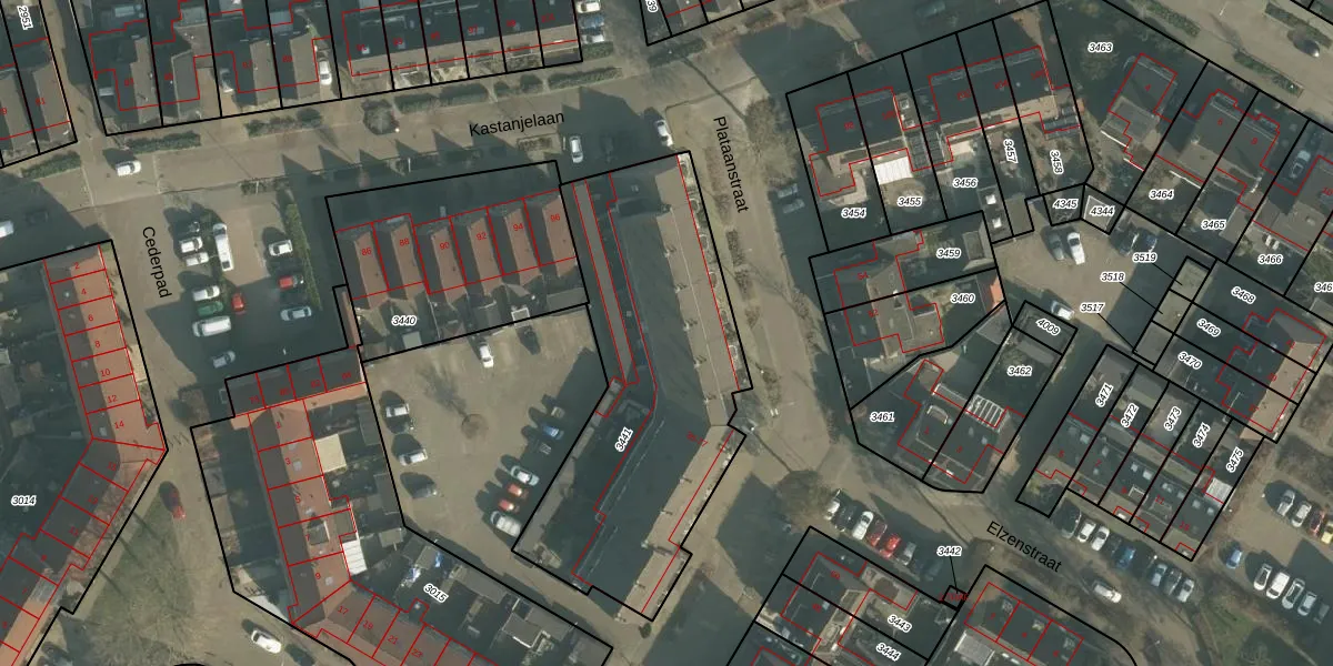 Plataanstraat 61 is gelegen op kadastraal perceel MDE01S3441. Deze kadastrale aanduiding is uniek en wordt gebruikt door het Kadaster om eigendomsrechten en andere zakelijke rechten vast te leggen. Het perceel maakt onderdeel uit van de kadastrale gemeente Made en Drimmelen.