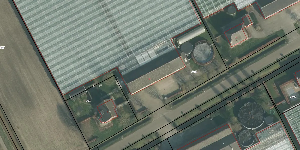 Het perceel waarop het adres ligt is MDE01-T-2242. De afkorting 'MDE01' staat voor kadastrale gemeente Made en Drimmelen. De oppervlakte van het perceel is 1,3 ha. Dat is groter dan gemiddeld in Made en Drimmelen, waar de gemiddelde perceeloppervlakte op 7289,69 m² ligt. De grootste perceeloppervlakte in de kadastrale gemeente is 3,79 km². De kleinste oppervlakte bedraagt 0 m². Dit is het enige adres dat aanwezig is op het perceel. De laatste wijziging in het de Basisregistratie Kadaster (BRK) was op 14-02-2007.