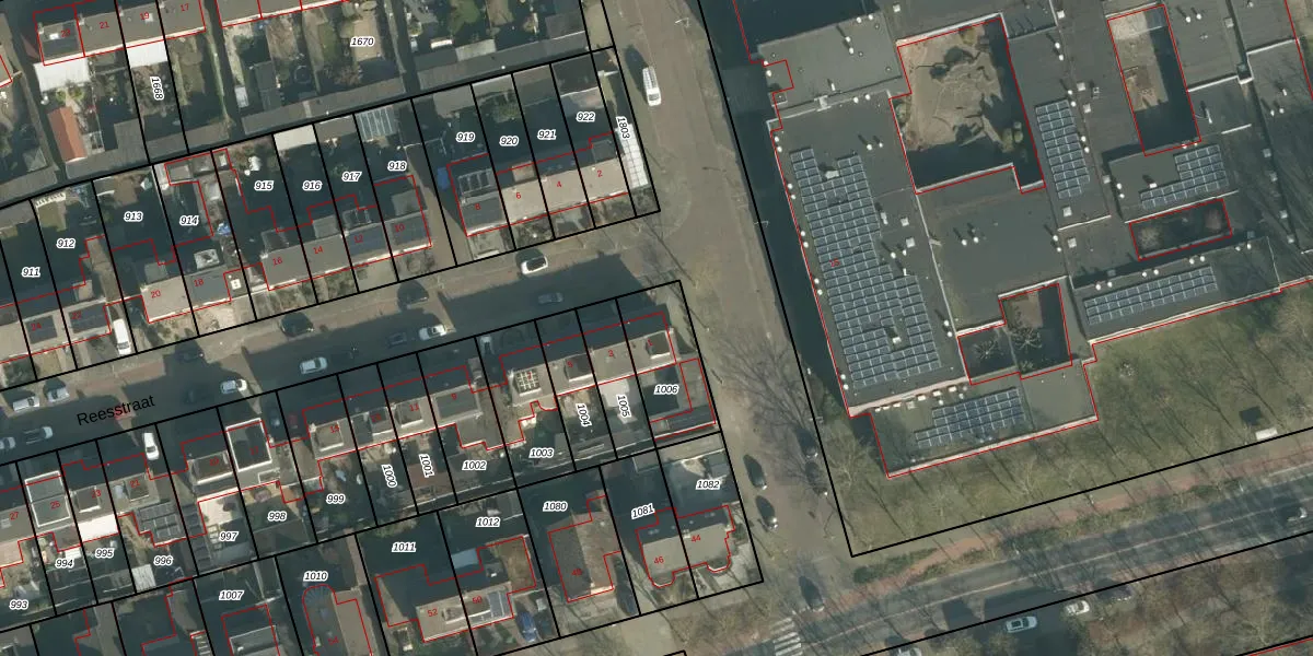 Gebruik de zoekbalk of klik op een perceel voor informatie over de adressen binnen dit perceel.