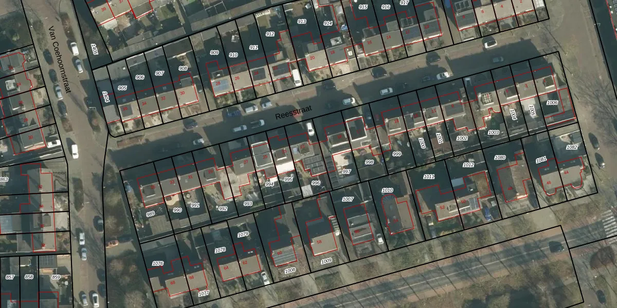Het perceel waarop Reesstraat 21 staat heeft een oppervlakte van 228 m². Dit is een middelgroot perceel. De perceeloppervlakte wordt geregistreerd door het Kadaster. Gedetailleerde informatie over de maten van dit perceel kunt u vinden in het rapport Kadastrale kaart met maatvoering van Reesstraat 21.