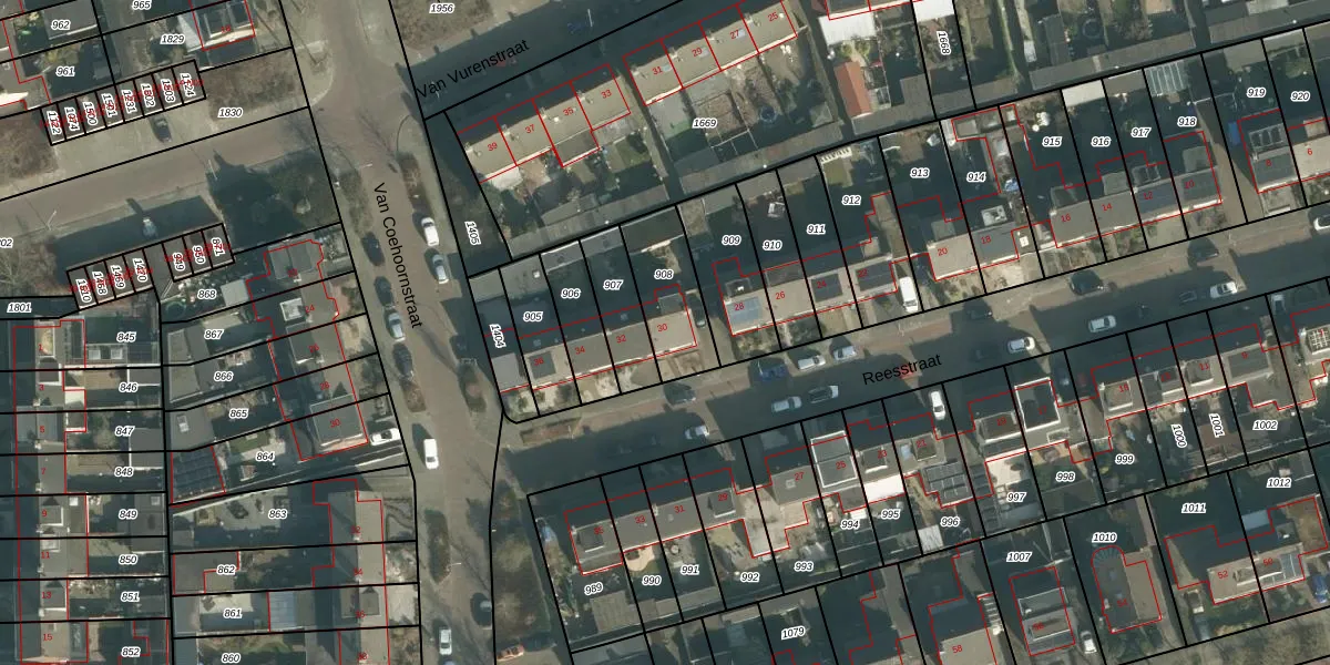 Het perceel waarop Reesstraat 30 staat heeft een oppervlakte van 230 m². Dit is een middelgroot perceel. De perceeloppervlakte wordt geregistreerd door het Kadaster. Gedetailleerde informatie over de maten van dit perceel kunt u vinden in het rapport Kadastrale kaart met maatvoering van Reesstraat 30.