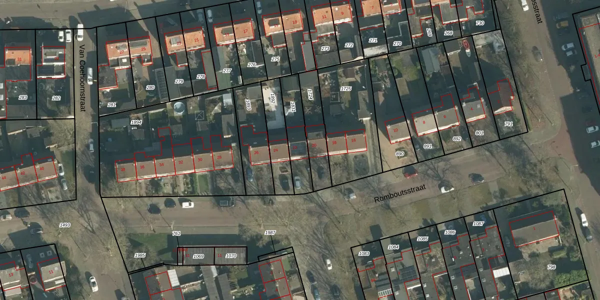 Het perceel waarop Romboutsstraat 22 staat heeft een oppervlakte van 250 m². Dit is een middelgroot perceel. De perceeloppervlakte wordt geregistreerd door het Kadaster. Gedetailleerde informatie over de maten van dit perceel kunt u vinden in het rapport Kadastrale kaart met maatvoering van Romboutsstraat 22.