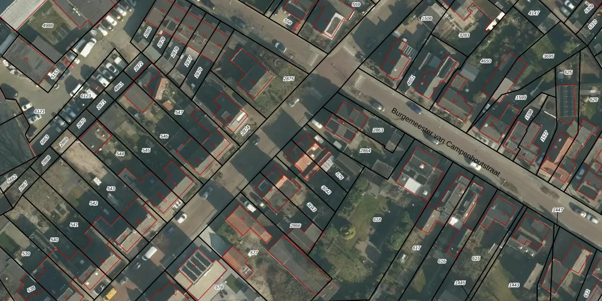 Gebruik de zoekbalk of klik op een perceel voor informatie over de adressen binnen dit perceel.