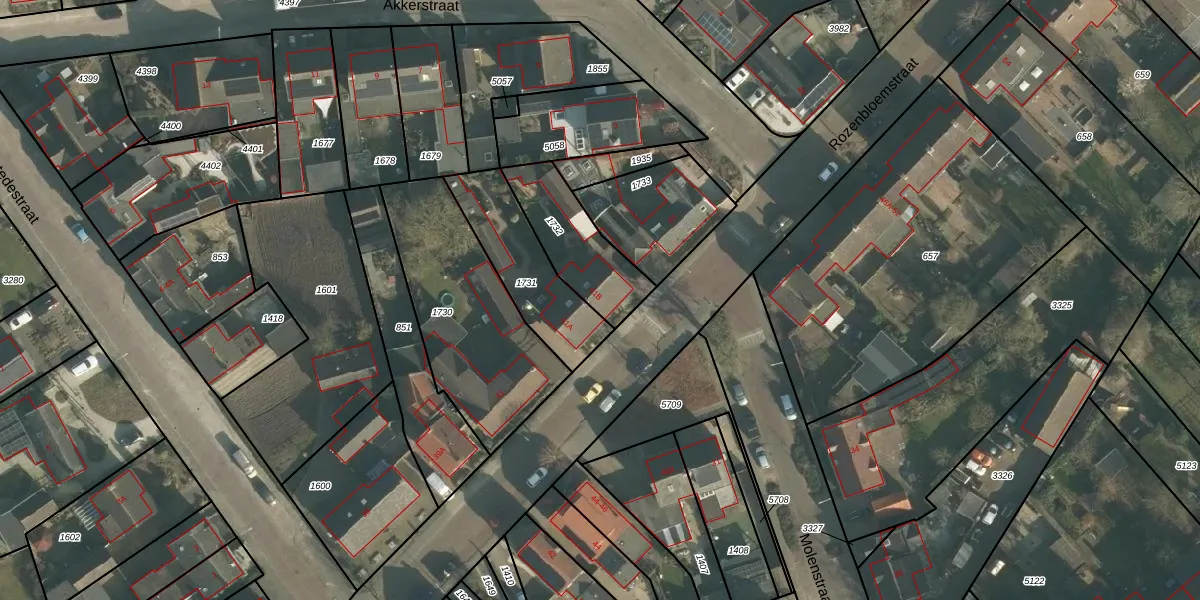Rozenbloemstraat 41-B is gelegen op kadastraal perceel MDE01S1732. Deze kadastrale aanduiding is uniek en wordt gebruikt door het Kadaster om eigendomsrechten en andere zakelijke rechten vast te leggen. Het perceel maakt onderdeel uit van de kadastrale gemeente Made en Drimmelen.