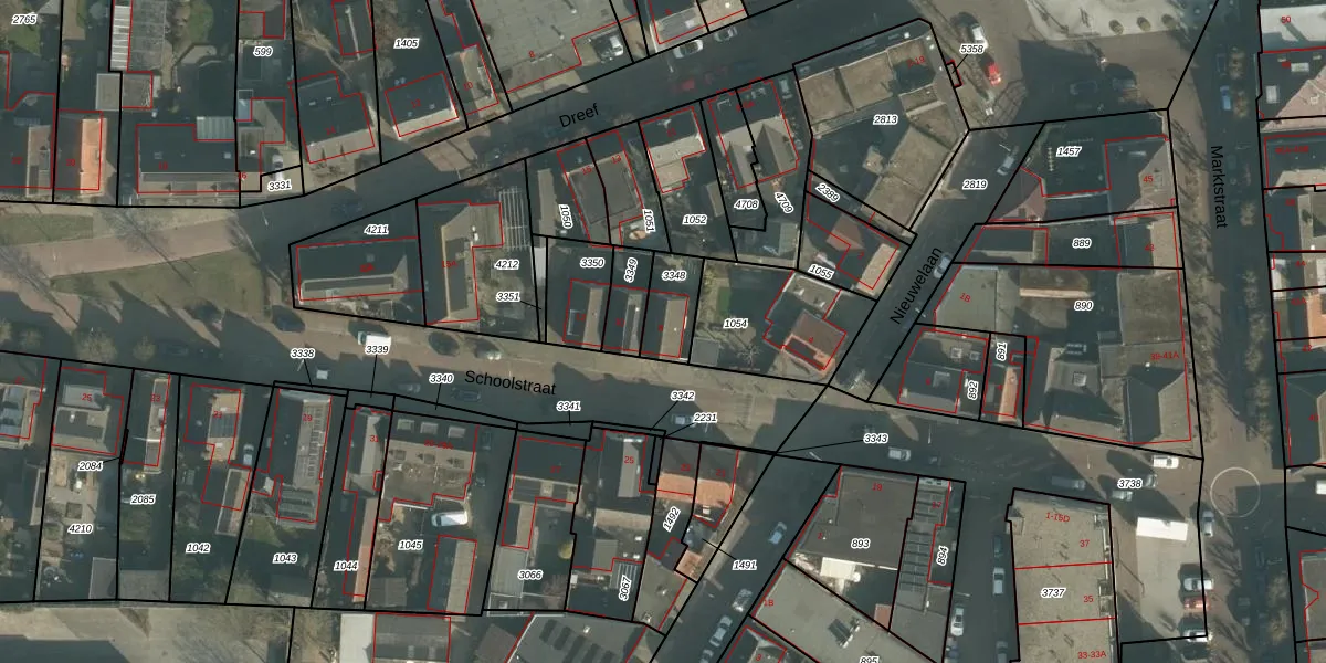 Gebruik de zoekbalk of klik op een perceel voor informatie over de adressen binnen dit perceel.