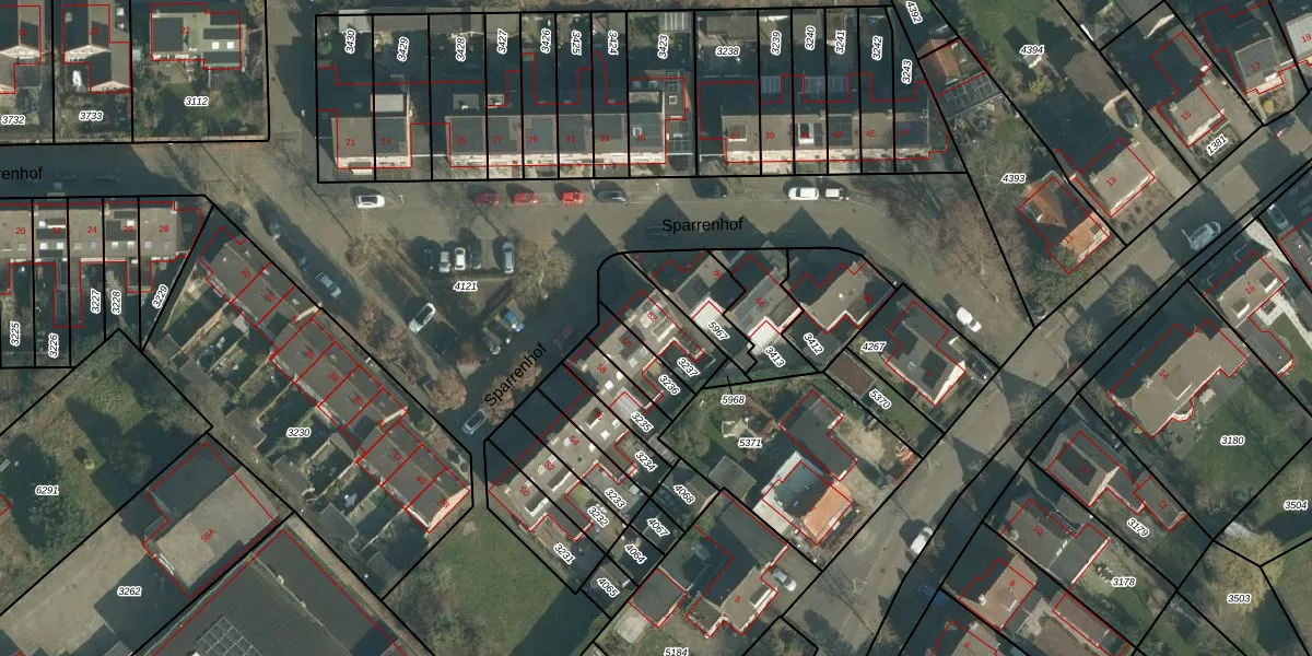 Het perceel waarop Sparrenhof 62 staat heeft een oppervlakte van 174 m². Dit is een middelgroot perceel. De perceeloppervlakte wordt geregistreerd door het Kadaster. Gedetailleerde informatie over de maten van dit perceel kunt u vinden in het rapport Kadastrale kaart met maatvoering van Sparrenhof 62.
