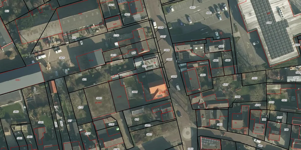 Stationsstraat 37-B is gelegen op kadastraal perceel MDE01S3984. Deze kadastrale aanduiding is uniek en wordt gebruikt door het Kadaster om eigendomsrechten en andere zakelijke rechten vast te leggen. Het perceel maakt onderdeel uit van de kadastrale gemeente Made en Drimmelen.