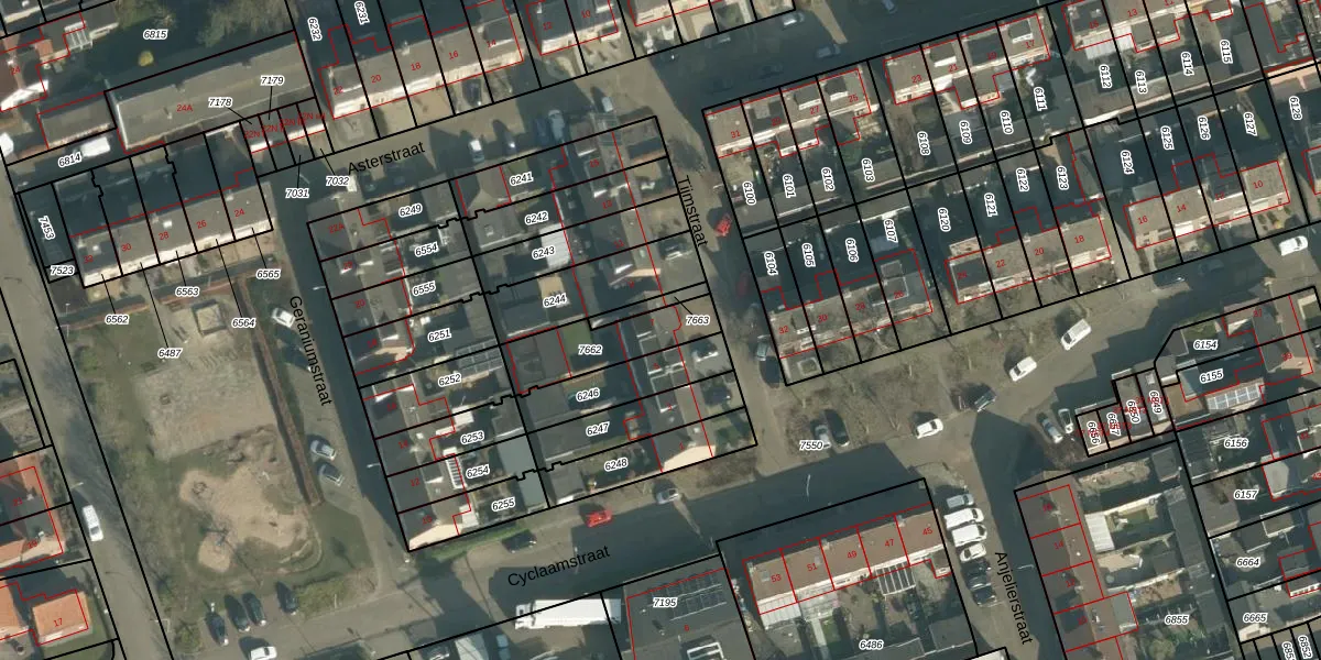 Gebruik de zoekbalk of klik op een perceel voor informatie over de adressen binnen dit perceel.