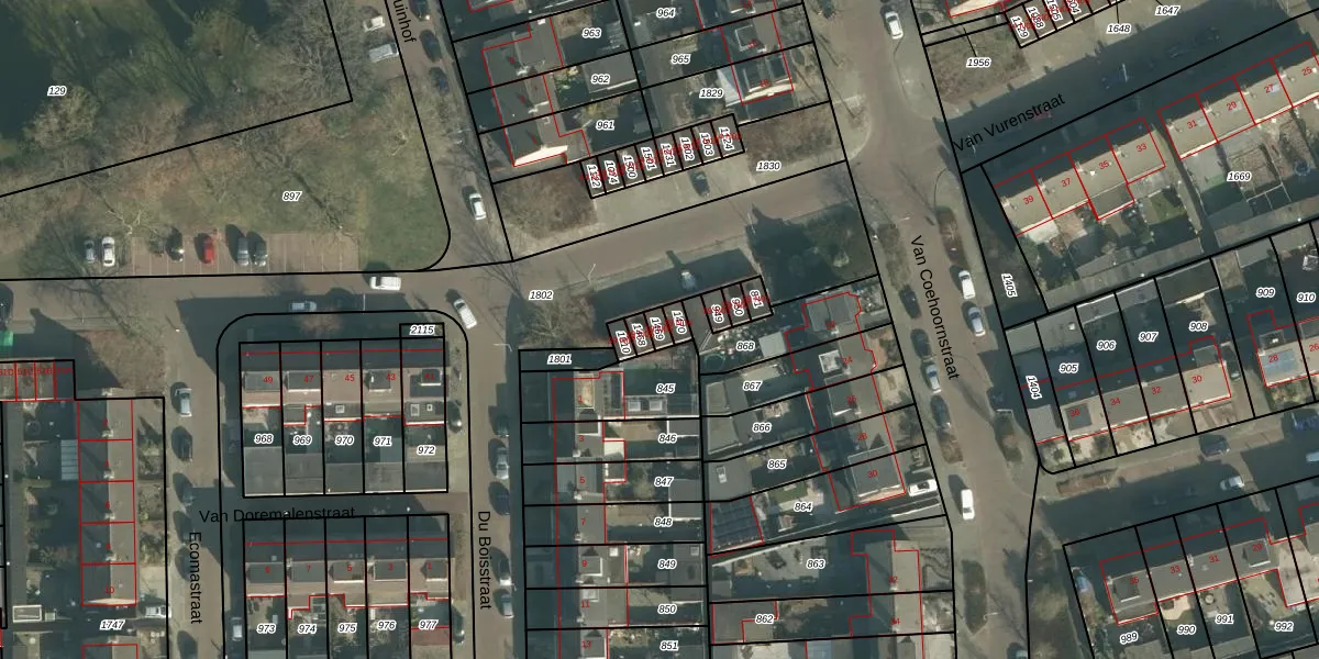 Gebruik de zoekbalk of klik op een perceel voor informatie over de adressen binnen dit perceel.