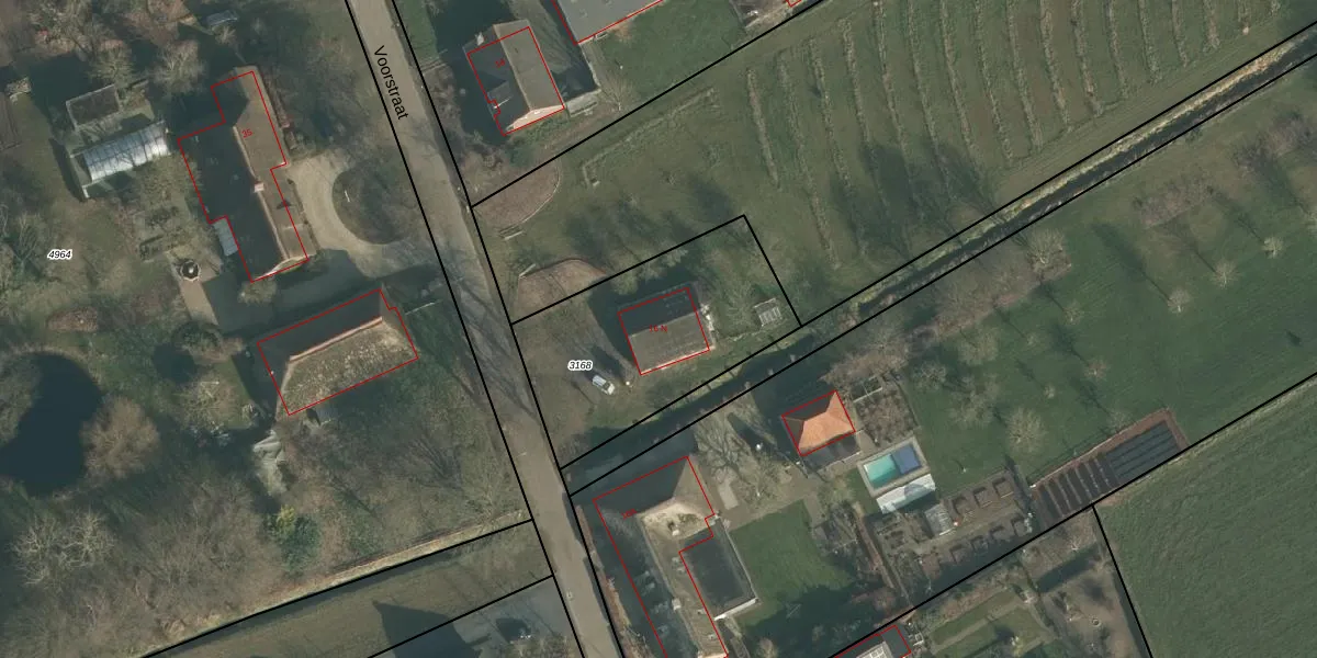 Het perceel waarop Voorstraat 16-N staat heeft een oppervlakte van 875 m². Dit is een groot perceel. De perceeloppervlakte wordt geregistreerd door het Kadaster. Gedetailleerde informatie over de maten van dit perceel kunt u vinden in het rapport Kadastrale kaart met maatvoering van Voorstraat 16-N.