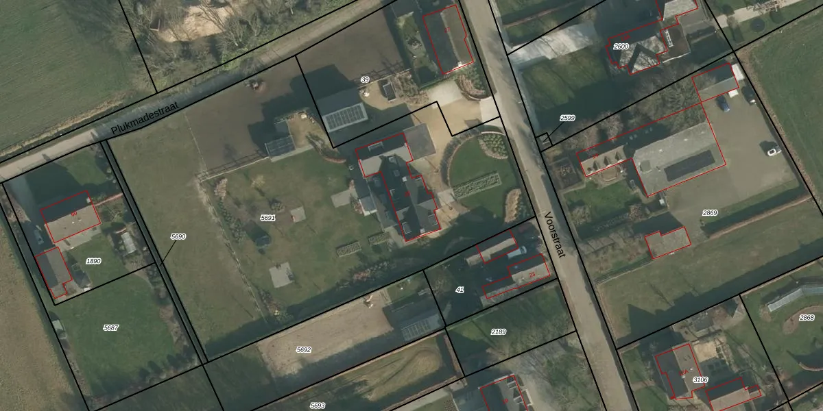 Gebruik de zoekbalk of klik op een perceel voor informatie over de adressen binnen dit perceel.
