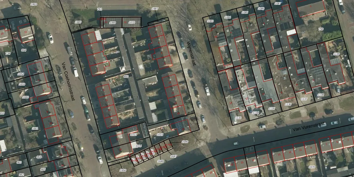 Het perceel waarop Wijnenstraat 12 staat heeft een oppervlakte van 3135 m². Dit is een zeer groot perceel. De perceeloppervlakte wordt geregistreerd door het Kadaster. Gedetailleerde informatie over de maten van dit perceel kunt u vinden in het rapport Kadastrale kaart met maatvoering van Wijnenstraat 12.