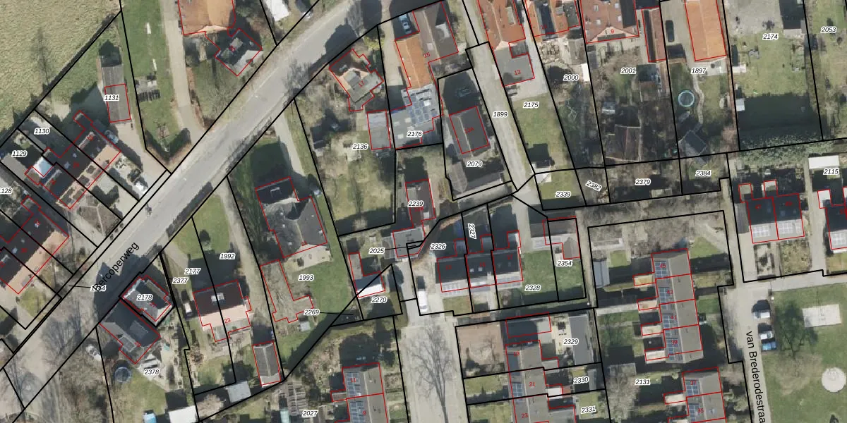 Gebruik de zoekbalk of klik op een perceel voor informatie over de adressen binnen dit perceel.