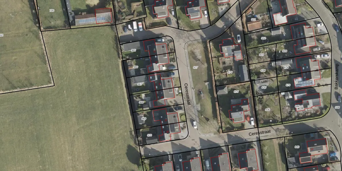 Ceresstraat 16 is gelegen op kadastraal perceel MKG00G967. Deze kadastrale aanduiding is uniek en wordt gebruikt door het Kadaster om eigendomsrechten en andere zakelijke rechten vast te leggen. Het perceel maakt onderdeel uit van de kadastrale gemeente Makkinga.