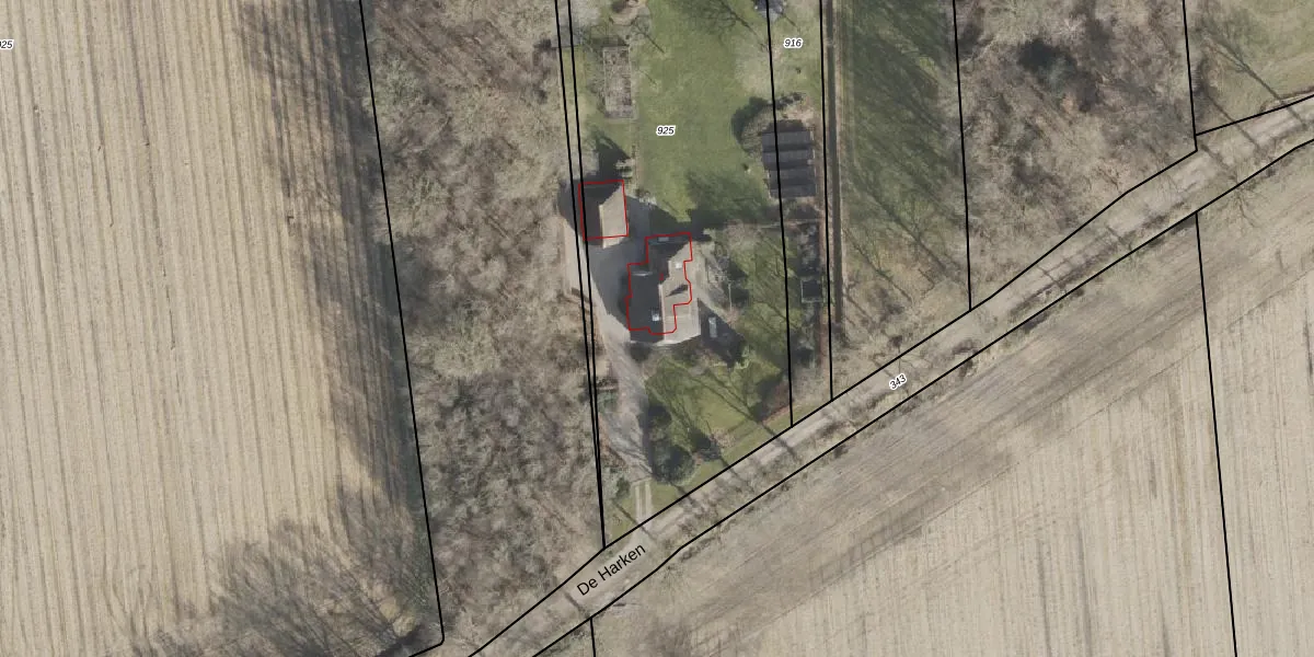 Het perceel waarop De Harken 2 staat heeft een oppervlakte van 3190 m². Dit is een zeer groot perceel. De perceeloppervlakte wordt geregistreerd door het Kadaster. Gedetailleerde informatie over de maten van dit perceel kunt u vinden in het rapport Kadastrale kaart met maatvoering van De Harken 2.