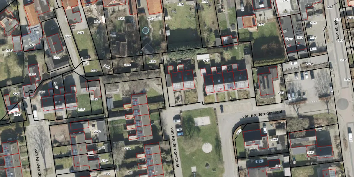 van Brederodestraat 47 is gelegen op kadastraal perceel MKG00E2115. Deze kadastrale aanduiding is uniek en wordt gebruikt door het Kadaster om eigendomsrechten en andere zakelijke rechten vast te leggen. Het perceel maakt onderdeel uit van de kadastrale gemeente Makkinga.