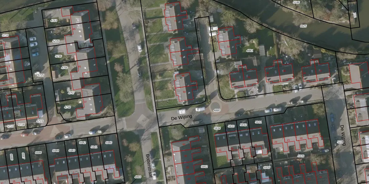 Het perceel waarop Botterstraat 64 staat heeft een oppervlakte van 4229 m². Dit is een zeer groot perceel. De perceeloppervlakte wordt geregistreerd door het Kadaster. Gedetailleerde informatie over de maten van dit perceel kunt u vinden in het rapport Kadastrale kaart met maatvoering van Botterstraat 64.