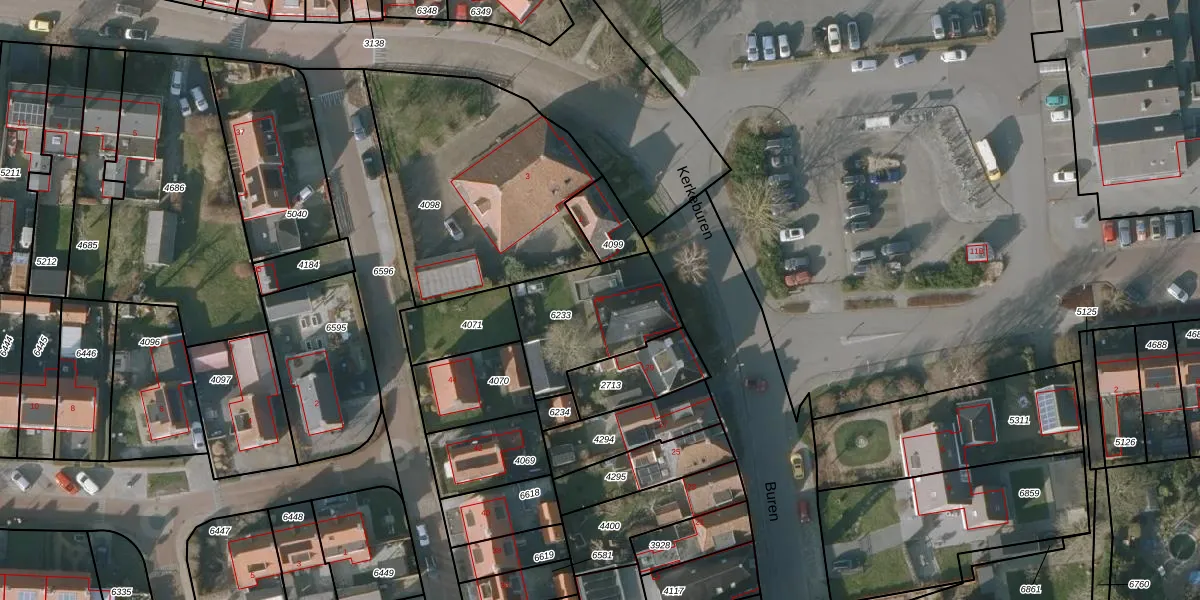 Het perceel waarop Buren 33 staat heeft een oppervlakte van 426 m². Dit is een groot perceel. De perceeloppervlakte wordt geregistreerd door het Kadaster. Gedetailleerde informatie over de maten van dit perceel kunt u vinden in het rapport Kadastrale kaart met maatvoering van Buren 33.