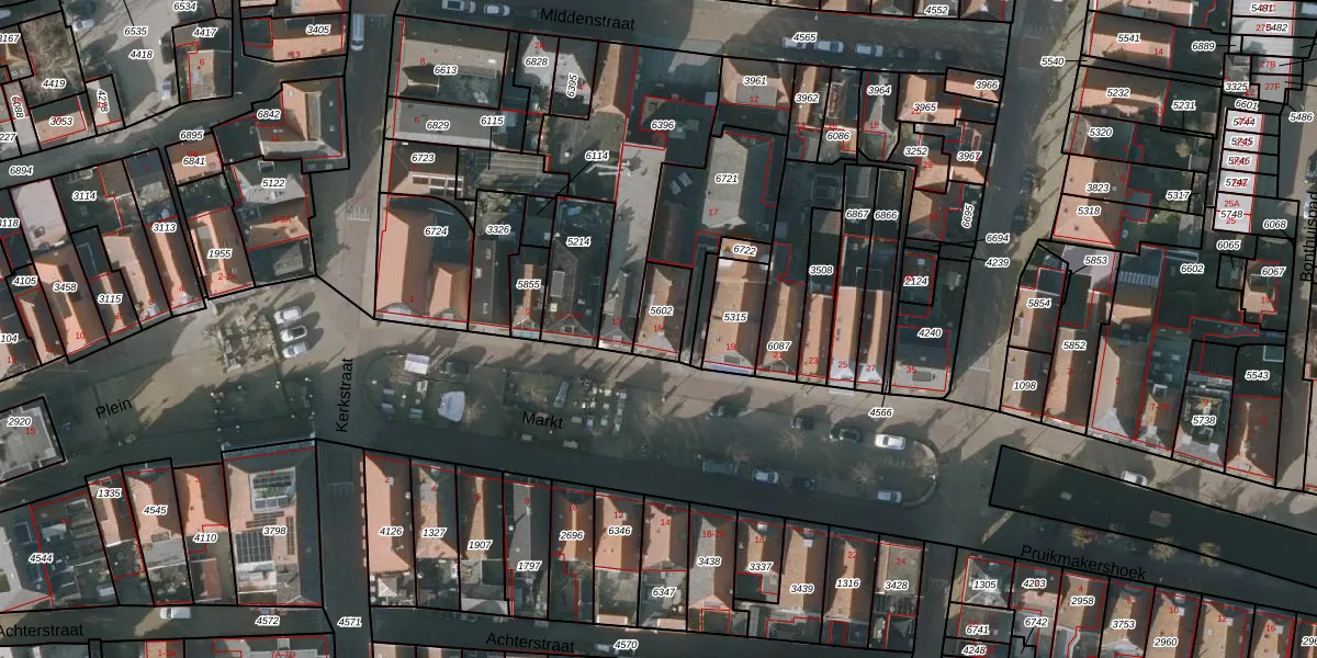 Het perceel waarop Markt 15 staat heeft een oppervlakte van 102 m². Dit is een middelgroot perceel. De perceeloppervlakte wordt geregistreerd door het Kadaster. Gedetailleerde informatie over de maten van dit perceel kunt u vinden in het rapport Kadastrale kaart met maatvoering van Markt 15.