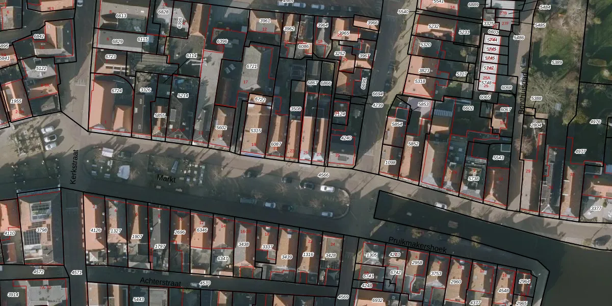 Het perceel waarop Markt 25 staat heeft een oppervlakte van 152 m². Dit is een middelgroot perceel. De perceeloppervlakte wordt geregistreerd door het Kadaster. Gedetailleerde informatie over de maten van dit perceel kunt u vinden in het rapport Kadastrale kaart met maatvoering van Markt 25.
