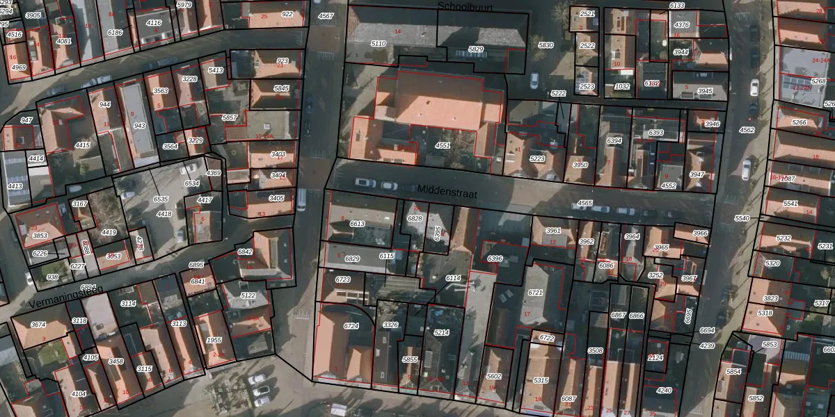 Het perceel waarop Middenstraat 2-A staat heeft een oppervlakte van 76 m². Dit is een klein perceel. De perceeloppervlakte wordt geregistreerd door het Kadaster. Gedetailleerde informatie over de maten van dit perceel kunt u vinden in het rapport Kadastrale kaart met maatvoering van Middenstraat 2-A.