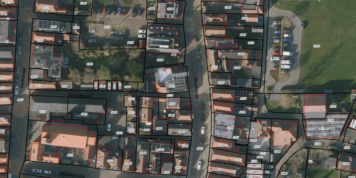 Het perceel waarop Schoolbuurt 7 staat heeft een oppervlakte van 392 m². Dit is een groot perceel. De perceeloppervlakte wordt geregistreerd door het Kadaster. Gedetailleerde informatie over de maten van dit perceel kunt u vinden in het rapport Kadastrale kaart met maatvoering van Schoolbuurt 7.