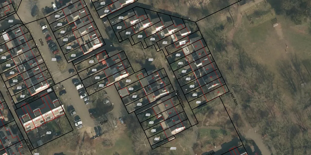 Gebruik de zoekbalk of klik op een perceel voor informatie over de adressen binnen dit perceel.
