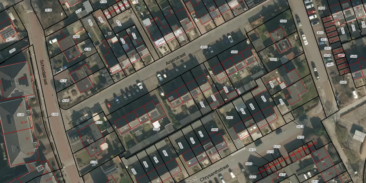 Anjerstraat 12 is gelegen op kadastraal perceel HMN01G5588. Deze kadastrale aanduiding is uniek en wordt gebruikt door het Kadaster om eigendomsrechten en andere zakelijke rechten vast te leggen. Het perceel maakt onderdeel uit van de kadastrale gemeente Heumen.