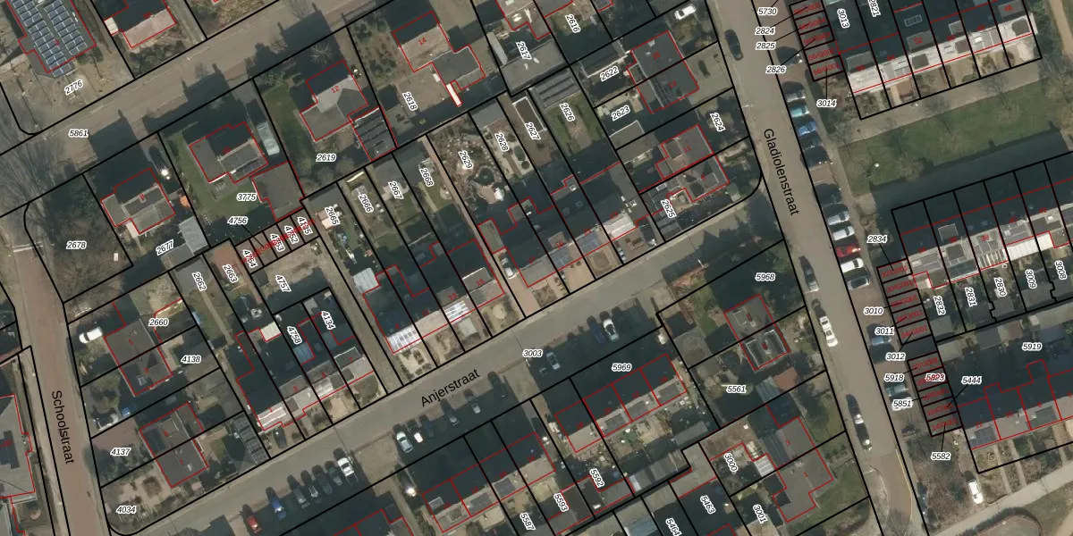 Gebruik de zoekbalk of klik op een perceel voor informatie over de adressen binnen dit perceel.