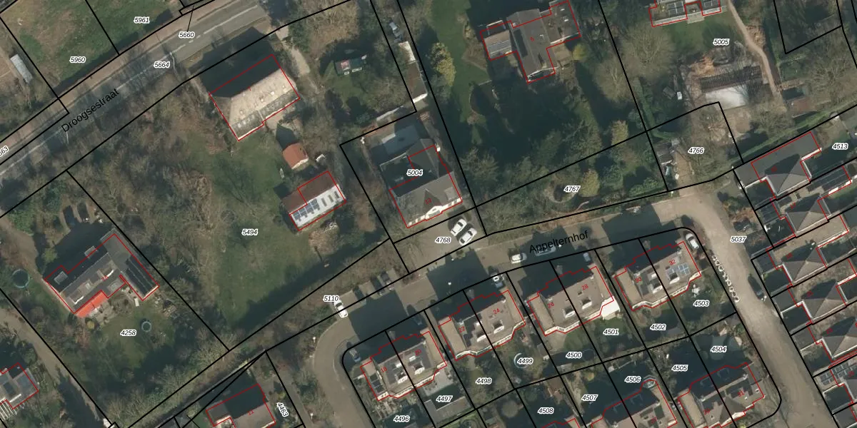 Het adres is gelegen op perceel 5004 in de sectie G en de kadastrale gemeente Heumen. De kadastrale aanduiding is aldus HMN01-G-5004. Het perceel is kleiner dan gemiddeld in Heumen. Het perceel is 720 m² groot, terwijl het gemiddelde ligt op 2943,38 m². Het grootste perceel in de kadastrale gemeente is 50,5 ha. Het kleinste perceel heeft een oppervlakte van 0 m². Er zijn geen andere adressen aanwezig op het perceel. De huidige grenzen van het perceel zijn digitaal in de Basisregistratie Kadaster (BRK) geregistreerd op 03-02-2011.