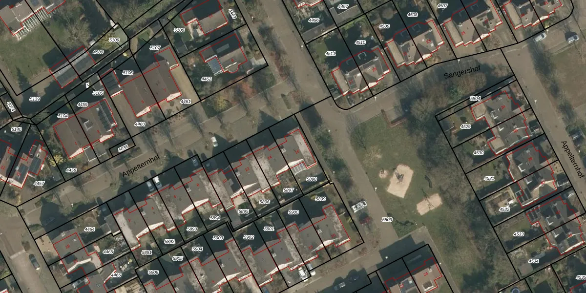 Het perceel waarop Appelternhof 16 staat heeft een oppervlakte van 258 m². Dit is een middelgroot perceel. De perceeloppervlakte wordt geregistreerd door het Kadaster. Gedetailleerde informatie over de maten van dit perceel kunt u vinden in het rapport Kadastrale kaart met maatvoering van Appelternhof 16.