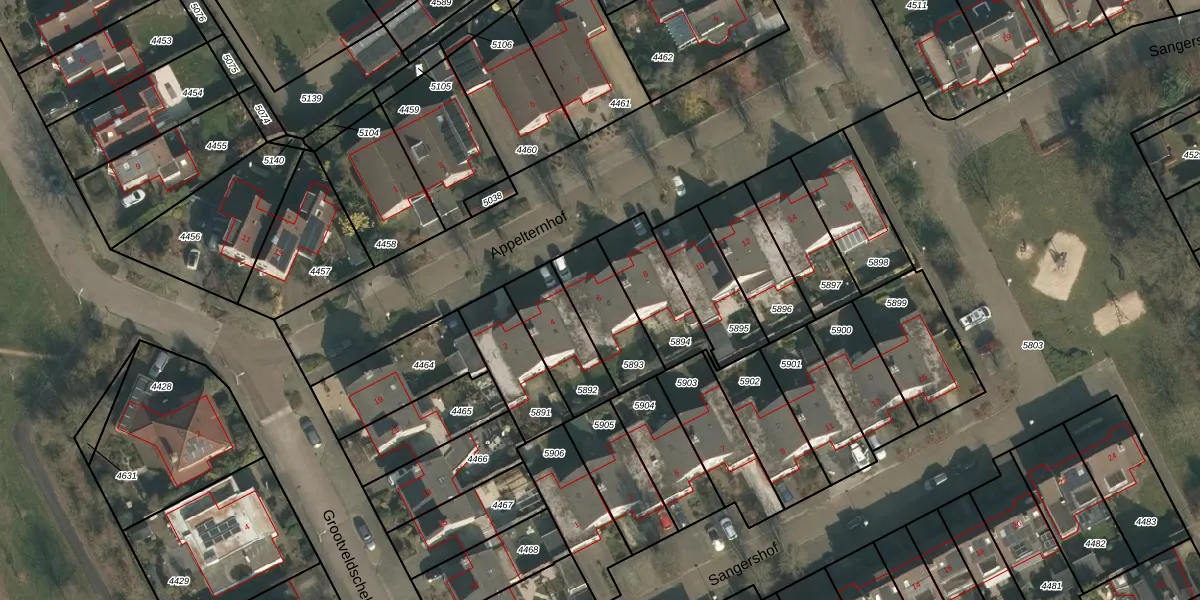 Het perceel waarop Appelternhof 6 staat heeft een oppervlakte van 217 m². Dit is een middelgroot perceel. De perceeloppervlakte wordt geregistreerd door het Kadaster. Gedetailleerde informatie over de maten van dit perceel kunt u vinden in het rapport Kadastrale kaart met maatvoering van Appelternhof 6.