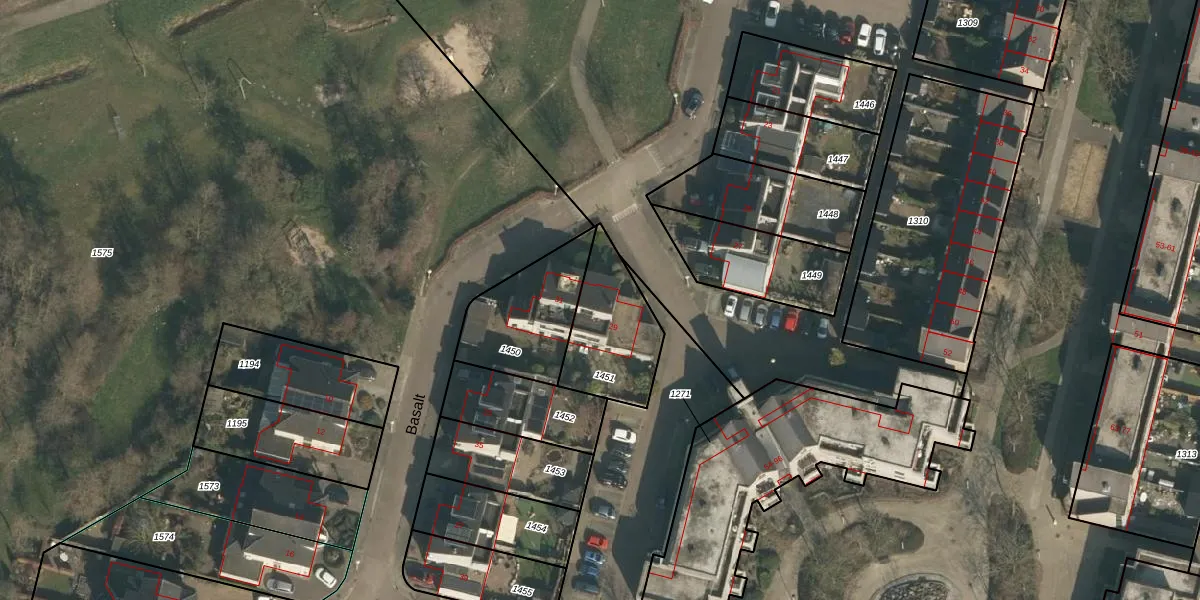 Het perceel waarop Basalt 29 staat heeft een oppervlakte van 318 m². Dit is een groot perceel. De perceeloppervlakte wordt geregistreerd door het Kadaster. Gedetailleerde informatie over de maten van dit perceel kunt u vinden in het rapport Kadastrale kaart met maatvoering van Basalt 29.