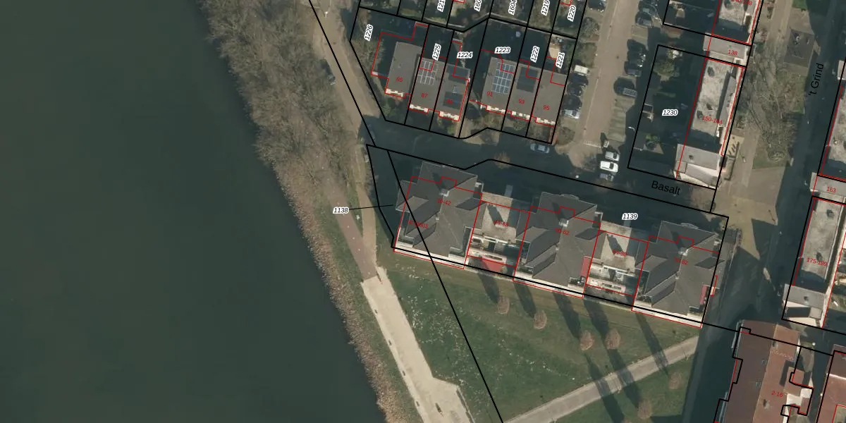 Het perceel waarop Basalt 38 staat heeft een oppervlakte van 1800 m². Dit is een zeer groot perceel. De perceeloppervlakte wordt geregistreerd door het Kadaster. Gedetailleerde informatie over de maten van dit perceel kunt u vinden in het rapport Kadastrale kaart met maatvoering van Basalt 38.