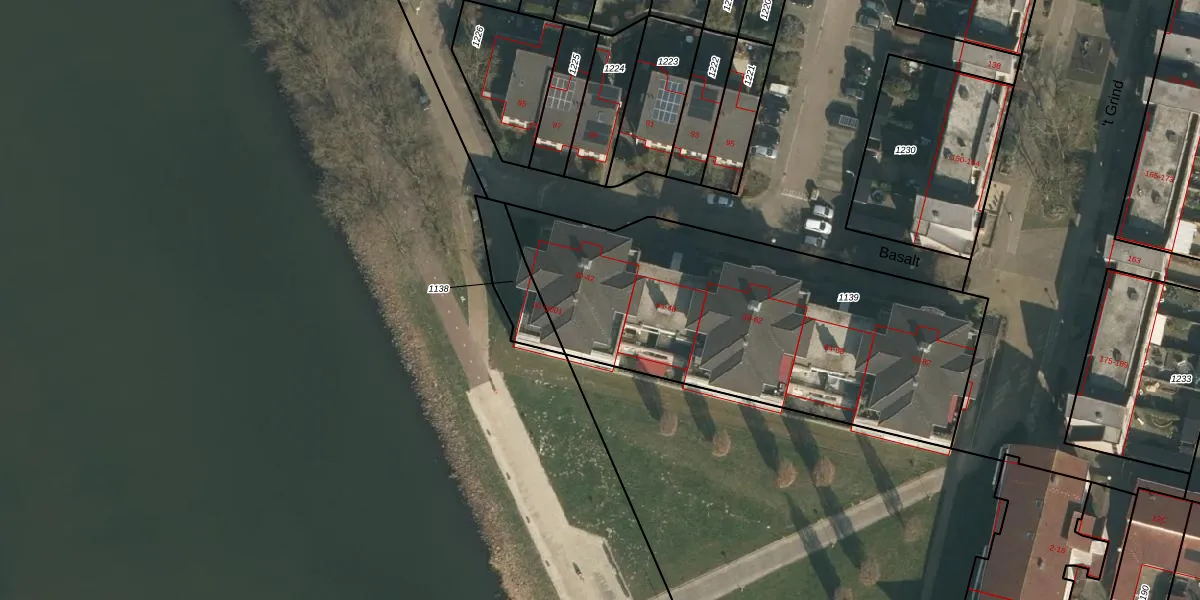 Het perceel waarop Basalt 40 staat heeft een oppervlakte van 1800 m². Dit is een zeer groot perceel. De perceeloppervlakte wordt geregistreerd door het Kadaster. Gedetailleerde informatie over de maten van dit perceel kunt u vinden in het rapport Kadastrale kaart met maatvoering van Basalt 40.