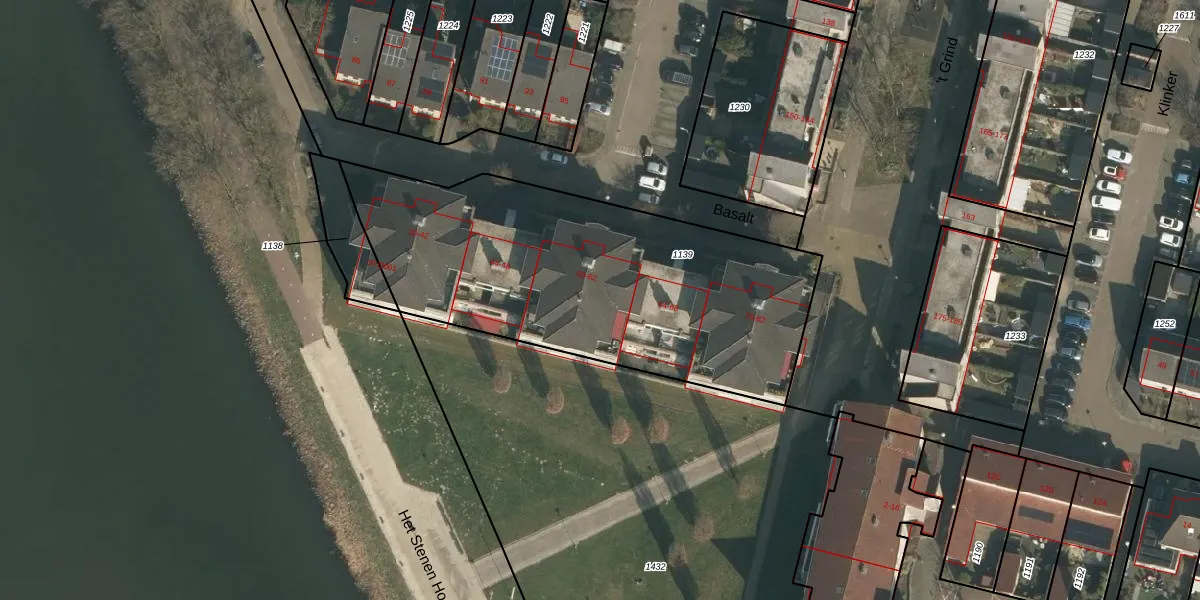Het perceel waarop Basalt 60 staat heeft een oppervlakte van 1800 m². Dit is een zeer groot perceel. De perceeloppervlakte wordt geregistreerd door het Kadaster. Gedetailleerde informatie over de maten van dit perceel kunt u vinden in het rapport Kadastrale kaart met maatvoering van Basalt 60.