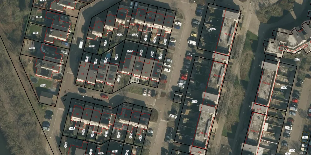 Gebruik de zoekbalk of klik op een perceel voor informatie over de adressen binnen dit perceel.