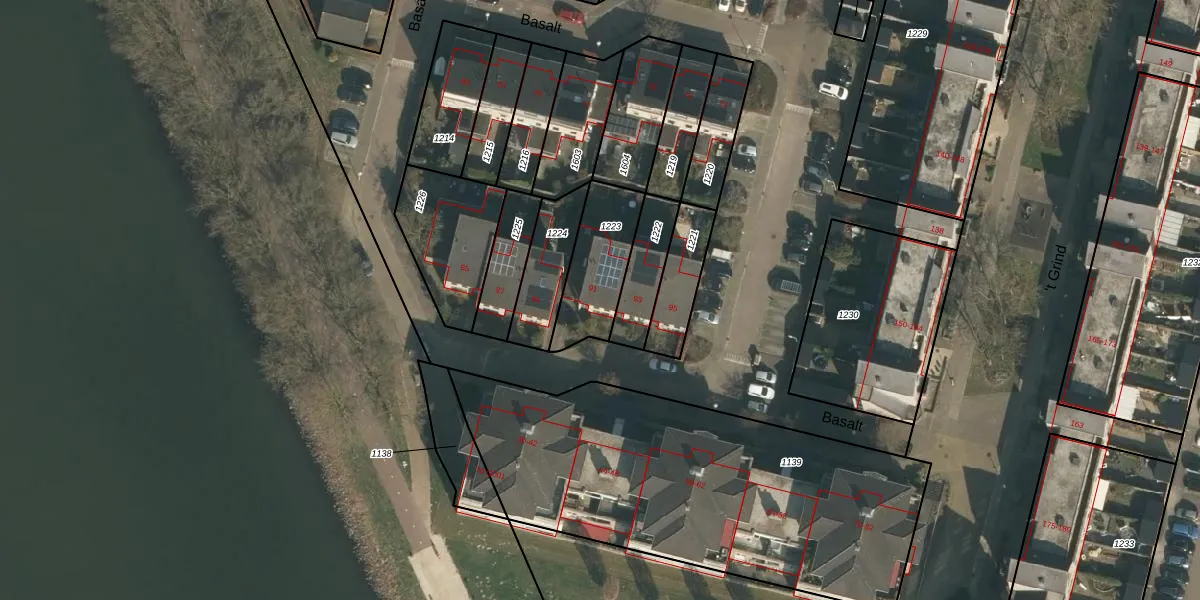 Het perceel waarop Basalt 91 staat heeft een oppervlakte van 253 m². Dit is een middelgroot perceel. De perceeloppervlakte wordt geregistreerd door het Kadaster. Gedetailleerde informatie over de maten van dit perceel kunt u vinden in het rapport Kadastrale kaart met maatvoering van Basalt 91.