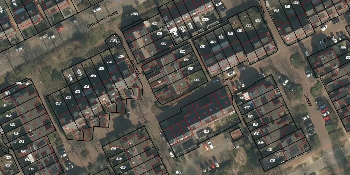 Het perceel waarop Bongerd 16 staat heeft een oppervlakte van 262 m². Dit is een middelgroot perceel. De perceeloppervlakte wordt geregistreerd door het Kadaster. Gedetailleerde informatie over de maten van dit perceel kunt u vinden in het rapport Kadastrale kaart met maatvoering van Bongerd 16.