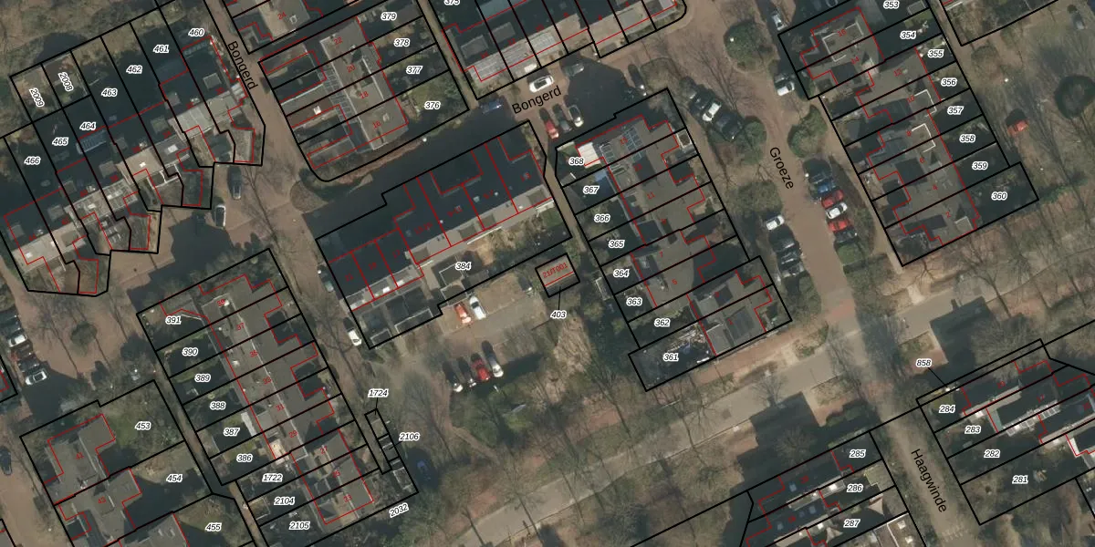 Het perceel waarop Bongerd 21-T001 staat heeft een oppervlakte van 37 m². Dit is een klein perceel. De perceeloppervlakte wordt geregistreerd door het Kadaster. Gedetailleerde informatie over de maten van dit perceel kunt u vinden in het rapport Kadastrale kaart met maatvoering van Bongerd 21-T001.