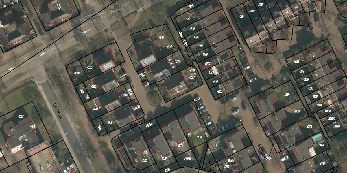 Het perceel waarop Bongerd 64 staat heeft een oppervlakte van 313 m². Dit is een groot perceel. De perceeloppervlakte wordt geregistreerd door het Kadaster. Gedetailleerde informatie over de maten van dit perceel kunt u vinden in het rapport Kadastrale kaart met maatvoering van Bongerd 64.